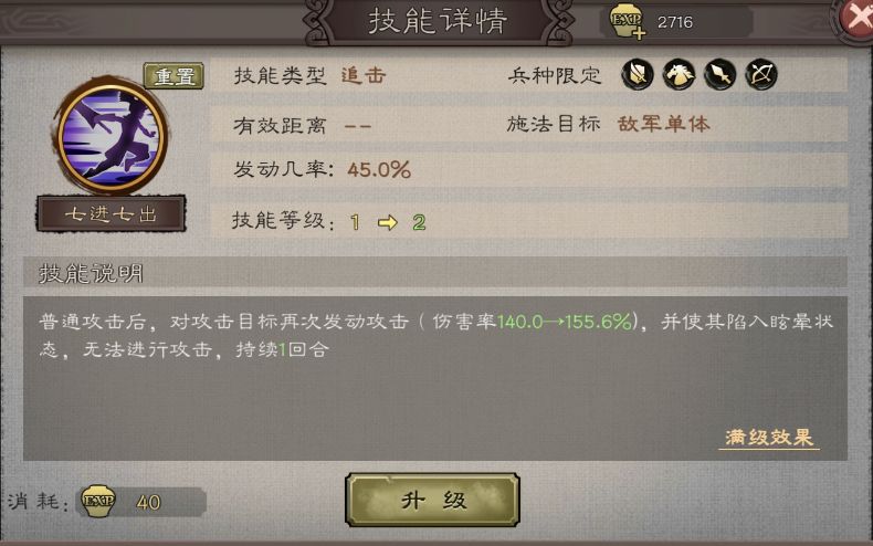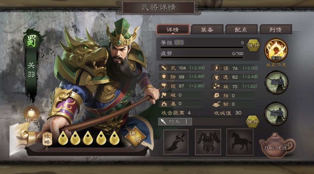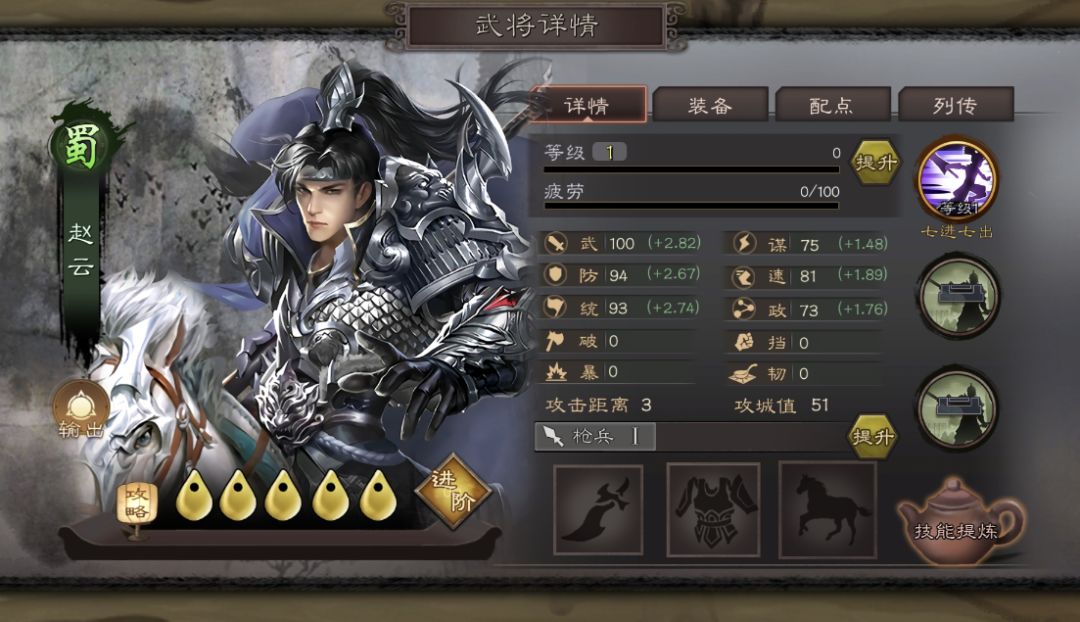 常山赵子龙难得比燕人张翼德更强势一回,看来TAPTAP版《城防三国志》的游戏策划是赵云的铁粉,竟然让他的初始武力值抵达了100点。携带枪兵出战的赵云,在战斗中主司输出,默认战法七进七出在完成普攻之后必定进行连击,满级伤害率280%。关键是被赵云连击的目标将陷入一个回合的眩晕状态,这控制效果非常的棒。
