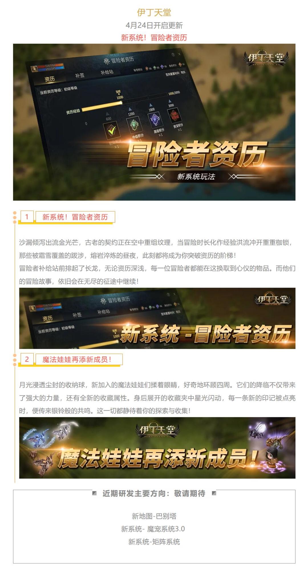 |伊丁天堂|[梦想启航][诗蔻蒂]4月更新预告:新系统!冒险者资历