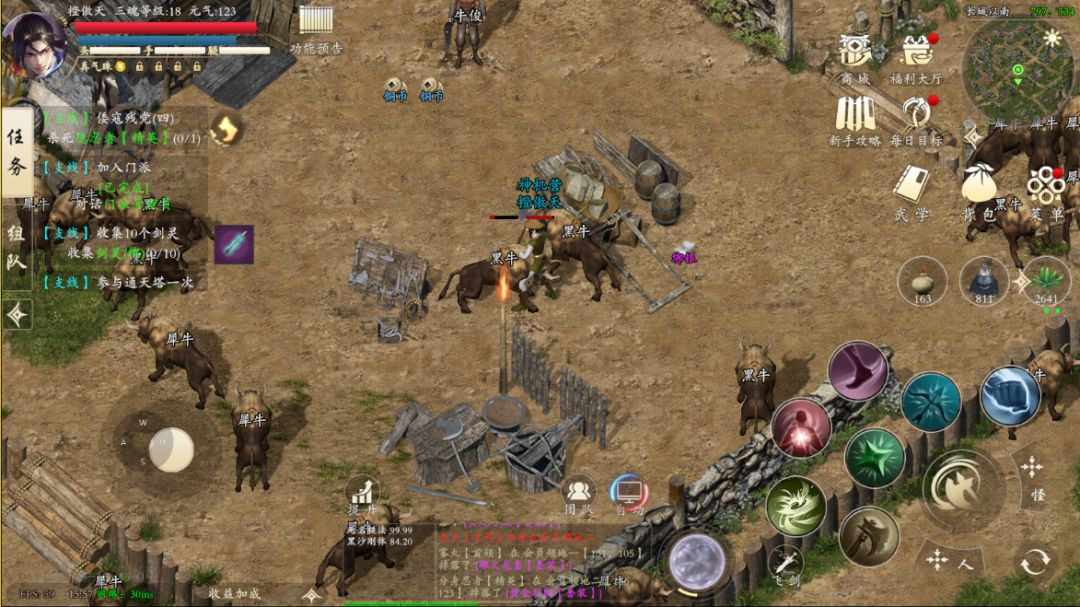 游戏构建六维武学体系,涵盖剑、刀、枪、弓等六大武器流派,每种武器对应独特连招体系。玩家可通过「斗魂系统」解锁隐藏武学,搭配经脉系统实现属性重塑,在实战中动态调整攻防策略。跨服战场「武林大会」引入地形互动机制,万人同屏竞技中,地形利用与团队配合将成为制胜关键。