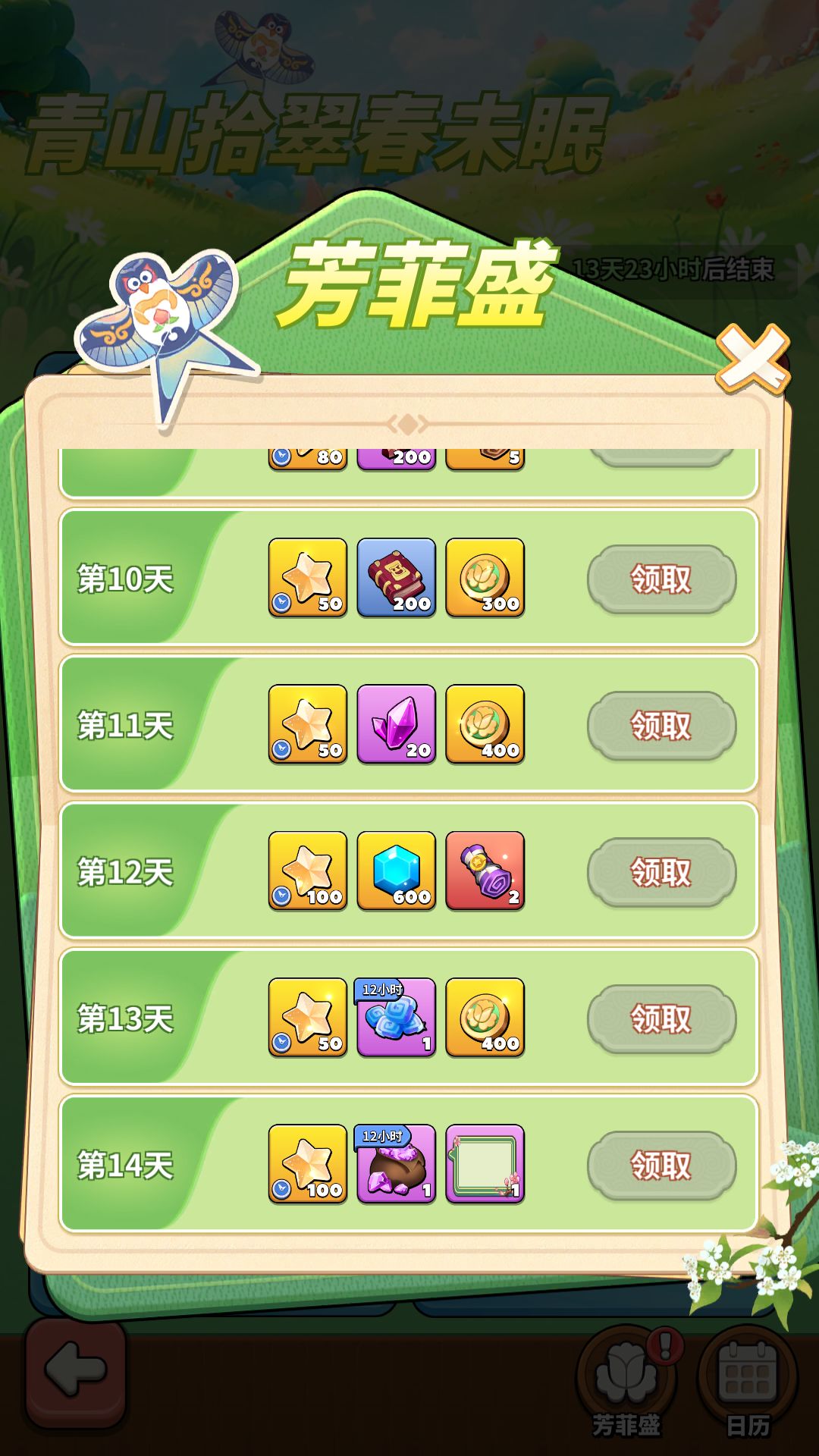 活动期间,每天登录即可领取芳菲盛奖励,领幸运星、集韶光点数、获取聊天气泡·春花妩!
