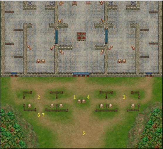 3、城内门开启方式:击杀乐进后,关平进入宝物库(6,0),插入钥匙,(12,6)~(12,9)的火会熄灭。击杀徐晃后,周仓进入宝物库(29,0),插入钥匙,(23,6)~(23,9)的火会熄灭。选错了钥匙断掉,两边无法直接走中间。