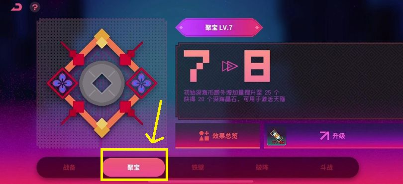 第二步:增强聚宝盆升级速度,降低聚宝盆经验能源的价格,点开天赋: