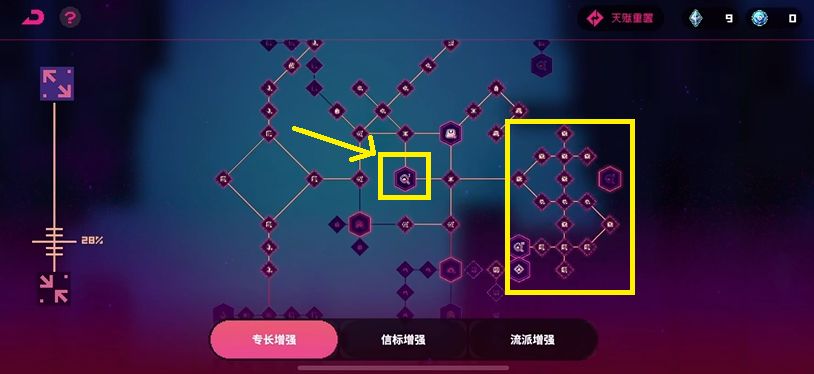 找到专长增强页,并激活最中心的这个大天赋:原始股份,初始给500个黑海币,再加上自带的可以到达600左右的黑海币,一次性能将聚宝盆升级到10级以上!!