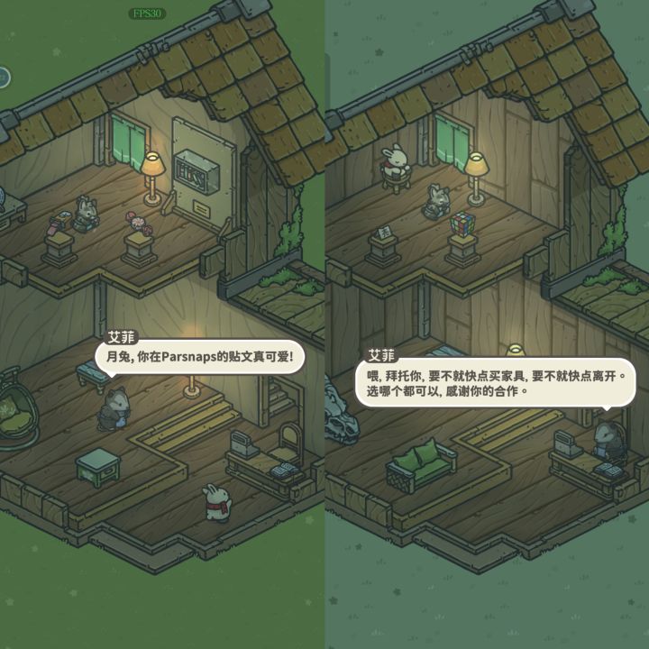 偶然之下我又想起这个游戏,一番操作后打开了国际服。游戏开头的火车真正意义上把我带回月兔的家乡,我像游子踏上了这片陌生又熟悉的故土。暮春的蘑菇村所到之处都是樱花树,尤里商店赫然摆放着漂亮的金平糖手机壳,火车站也成为了新的传送点……我又像穿越小说里承载着上一世记忆的主角,我毫不意外地被偷走全部家具,阿琪对此有点愧疚但不多,第一张动态是和皮皮的合照,艾菲对我依旧爱搭不理……
