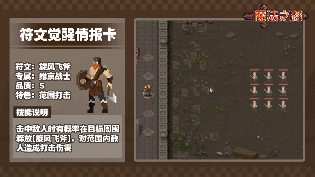 击中敌人时有概率在目标周围释放[旋风飞斧],对范围内敌人造成打击伤害。