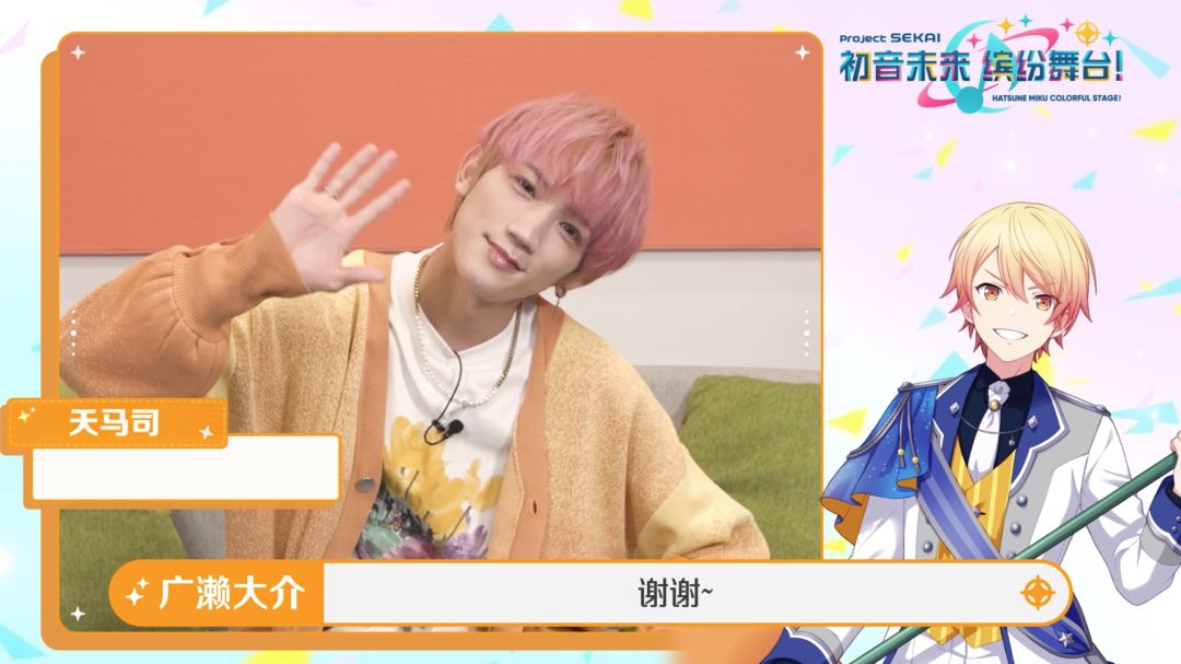 为了庆祝《初音未来:缤纷舞台》的正式上线,天马司的CV 广濑大介为大家送上了一份饱含心意的祝福~