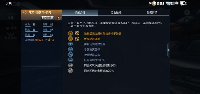 AK47-游骑兵-乔月和AK47-游骑兵的数据关系堪称数据克隆体,和AK47-竞界荣光相比,在基础威力和射速、精度等方面也是不相伯仲,实现了满状态战力输出!