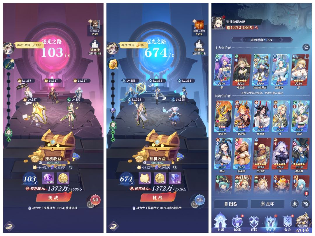 魔晶:建议5级5级的平均养,5个主力守护者中最低等级的魔晶决定所有角色魔晶等级