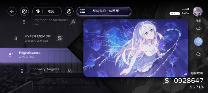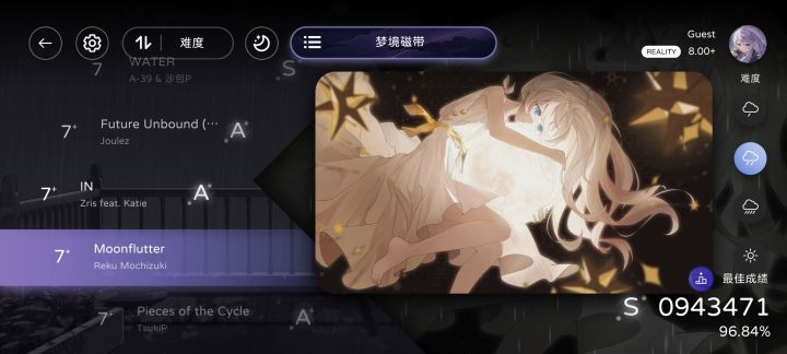 虽然歌少,但是感觉都很好听,好听又好打,没有有那种吵的要死,跟指甲刮黑板,电音吵到头疼没有旋律只有节奏的歌曲,(疾风骤雨我觉得也好听)看来我刻板印象了,还是有好听的音游游戏,当然,希望以后也别出。歌曲都很对我胃口,除了雨世界的一般。而且画面设计很美。现我在普通难度基本攻克,准备上困难,慢慢玩了。可能只玩这一个音游了,除非有其他曲风更对我胃口的