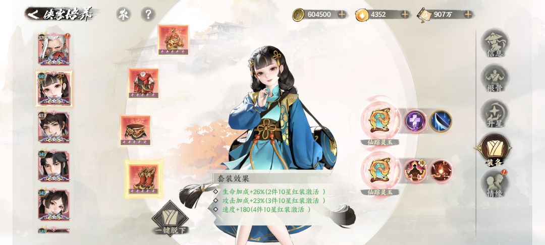 心法:无双(极影袭+极穿心+裂伤+骤雨/破盾/聚气),姬洛风(轻身+回春+凝神+化劫/泄力,较看重高级属性闪避治疗),沐春风(随意+灭愈+阴伤),慕雨墨(毒手+腐脉+蚀骨+聚气),华锦(随意+灭愈+阴伤)