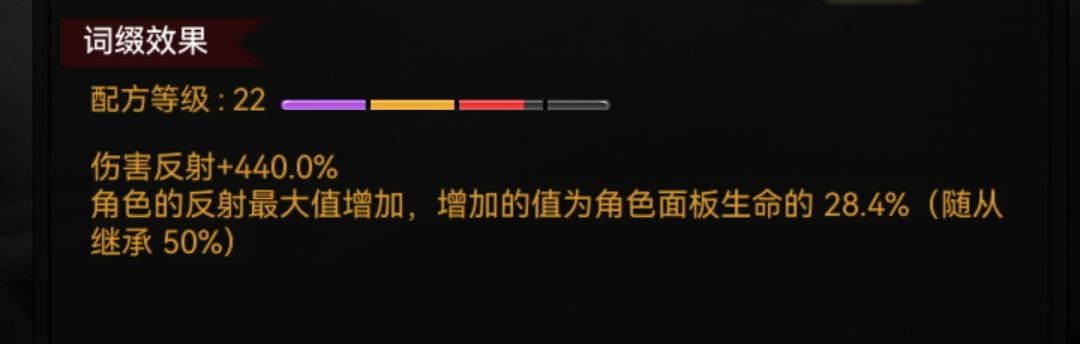 神装选择头和戒指选耐的,衣服选择加反射上限的,其余优先选敏,因为都选耐会稀释耐的属性。