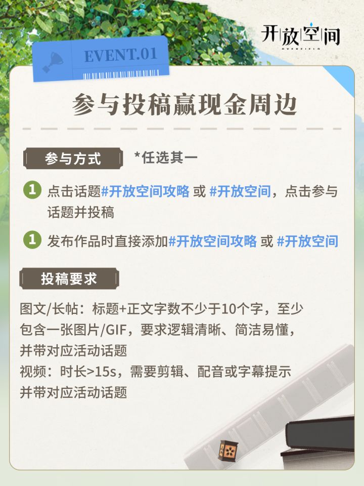 开放空间正式公测,投稿参与创作激励赢取现金奖励和游戏周边!