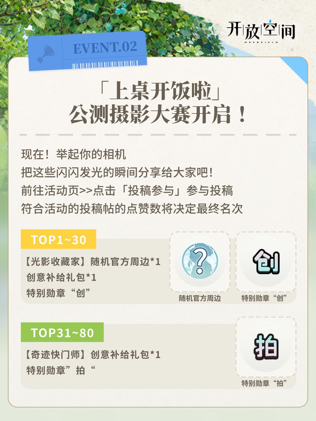 🔥活动二:「上桌开饭啦」公测摄影大赛