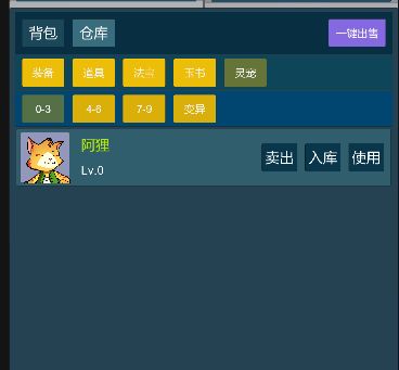 - 【背包】页面有战斗中得到的装备,分为白,绿,蓝,紫,橙。5个品质。先现在当前品质最后的装备