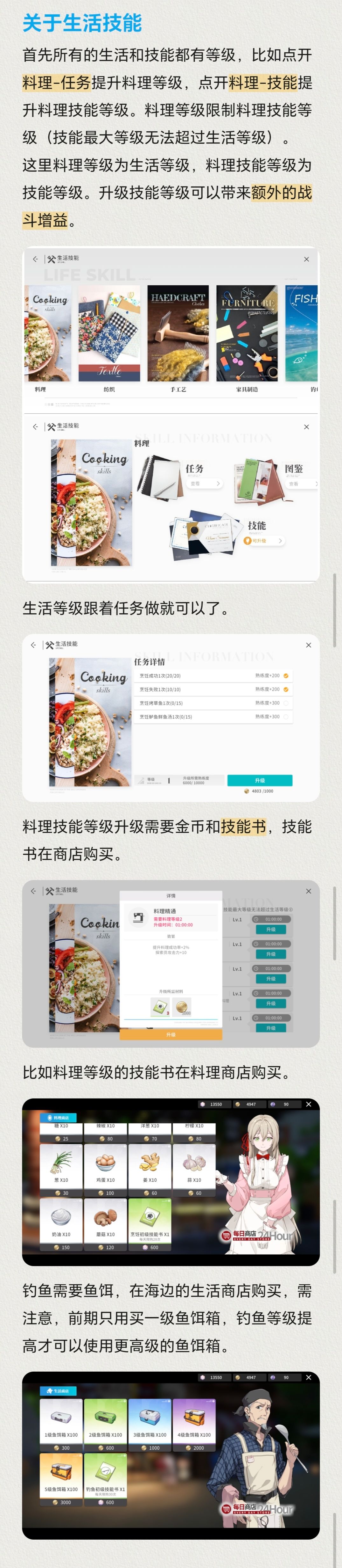 *料理、手工艺之类生活技能所需制作材料基本都是在商店买。