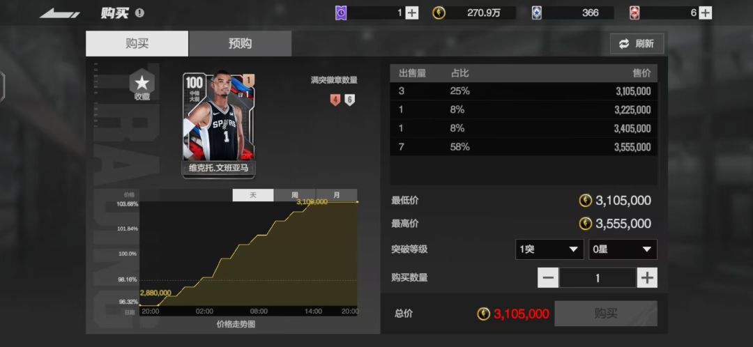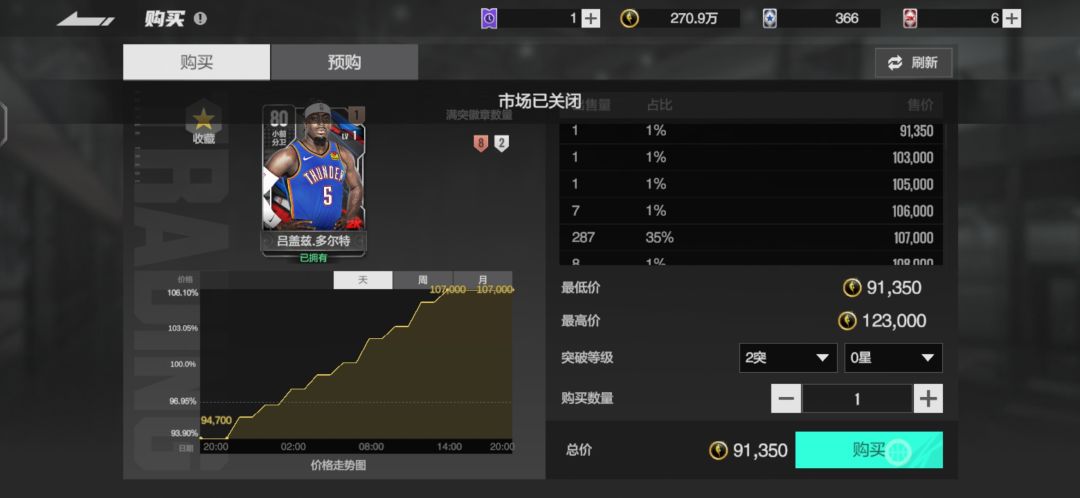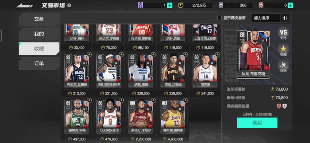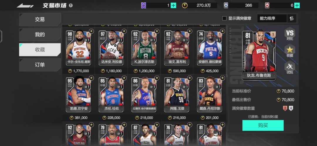 这里我自己用的有AJ格林,普林斯,肯纳德,墨菲三世,以及还没有弄满的多尔特,狄龙,比斯利(因为还在养sga,所以这些先放一边了,并且像多尔特这种特别好用的,如果不用预购券,确实有点难抢)我是贯彻这些便宜卡是能不用预购券就不用的,毕竟考虑到很多0氪微氪平民党是不花钱的,要是用了感觉就有点脱离实际情况了。然后说下我平时怎么抢卡的吧,想必大伙儿很多人都知道的,就是连点器,我自己手机安卓的用的是闪指连点器,iOS的用什么连点器不知道,如果没有安卓手机,可以考虑用电脑的雷电模拟器,虽然不能匹配打游戏,但是模拟器上用连点器抢抢卡还是可以做到的,如果还有具体不懂的可以评论区问我。然后还有一个过了两点可以看交易行的小技巧,就是把自己手机的时间设置,改成欧洲的,2点后还能看到交易行里面的情况,虽然不能买卡,但是可以看到官方放卡的情况,比如文班为什么那么难抢,预购券甚至都几天买不到,就是因为官方2点后的放卡也很少。然后我还把一些好用的卡各个价位的都收藏截图放帖子里了,有需要的可以看看,不了解的也可以具体评论区问,因为字数限制,先说到这,觉得有用的老哥们点点赞收藏 谢谢