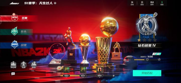 )干好脏活累活,挡好拆,抢好板完事了,也是顺利的80多胜率上了超巨)街头上完超巨后,偶尔有空也打打王朝,胜率也还行,用的也都是比较平民的卡,我的阵容搭配逻辑是,两个C板得硬并且有铜墙铁壁,剩余四个位置都得有不错的三分能力,便宜点防守差点没事(可以手操协防),三分不是超130就是得有热区有接球投射徽章,这样至少自己进攻对面来协防我挡拆进攻的时候我能精准传球判断谁来协防从而传到位投出空位3。