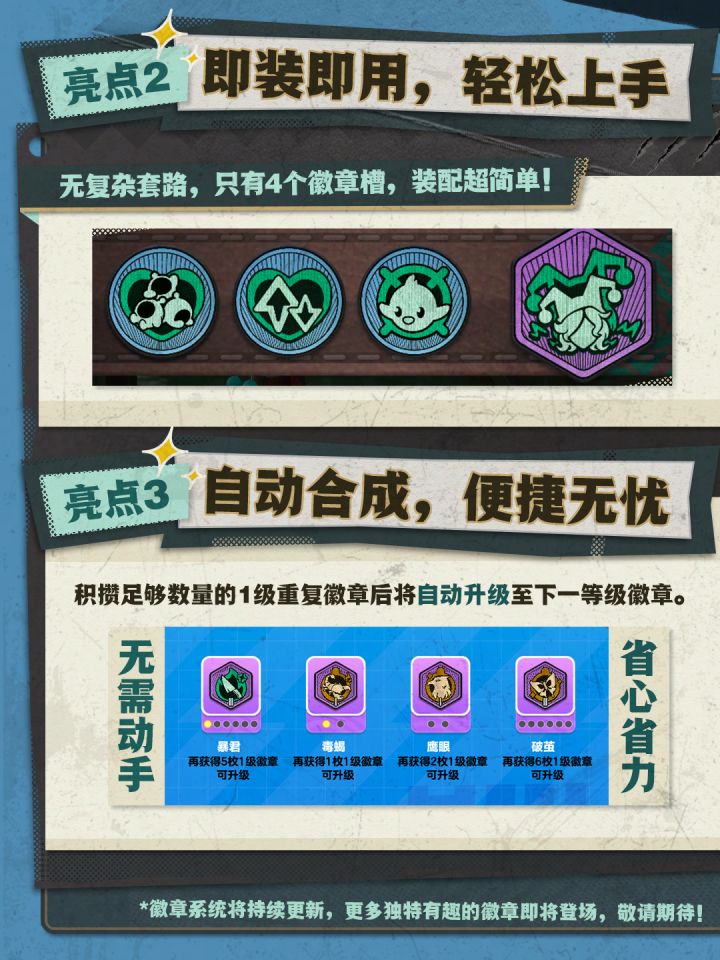 ▶积攒足够数量的1级重复徽章后,将自动升级至下一等级徽章,无需动手,省心省力。