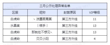 本帖将用于各位上仙举报公屏不当言论、使用第三方软件(包括但不限于除游戏安装包外的脚本、外挂、加速器、美化包等)、卡BUG等违规游戏行为,我们将对举报内容进行核实,并视情况给予禁言1天-永久禁言、封禁角色、封禁账号等惩罚。