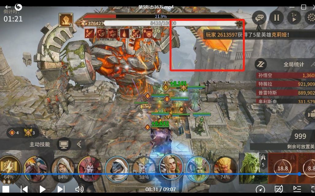 最后几个细节需要注意,也就是各个阶段boss技能循环,英雄释放技能需要卡点