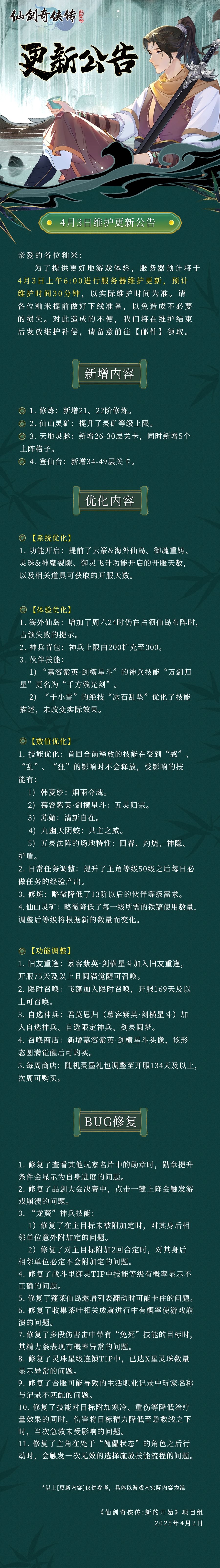 4月3日维护更新公告