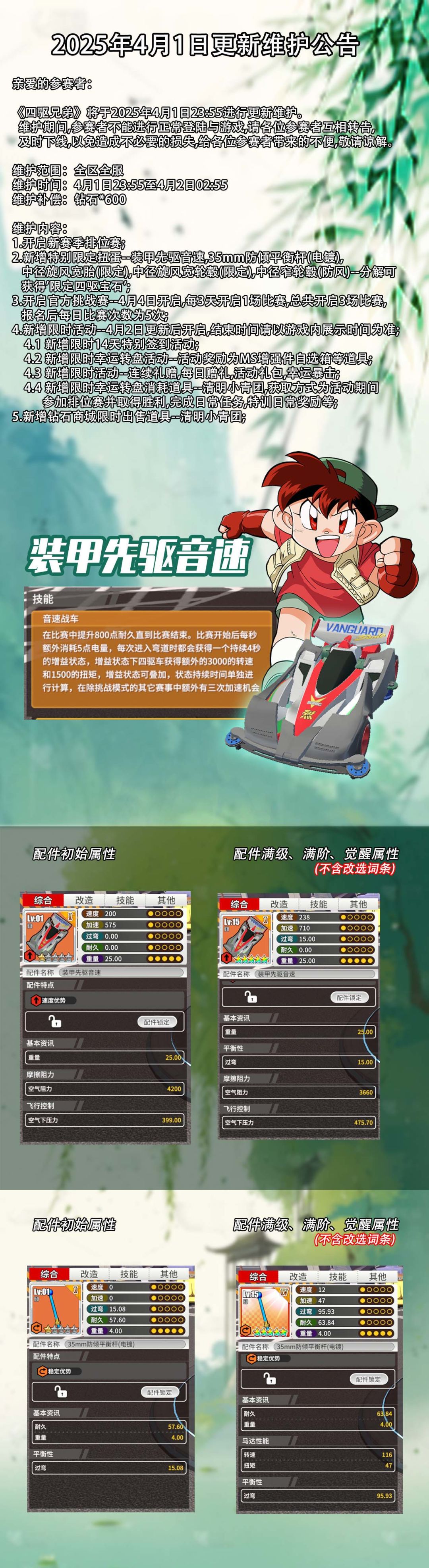 限定扭蛋池“装甲先驱音速”开启;2025年4月1日更新维护公告