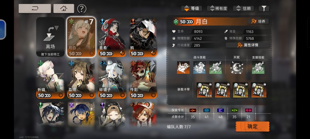 刚需部分:手打,数值要求如图,卡带如图,夜来支援7(boss波全程夜来支援),站位2需要效果抵抗26%+(抗白瑾眩晕(还是会吃一次,但是月白的卡带能帮消一回合),净天c(需要能增益自己且群c)(增益完1w血+2k伤)