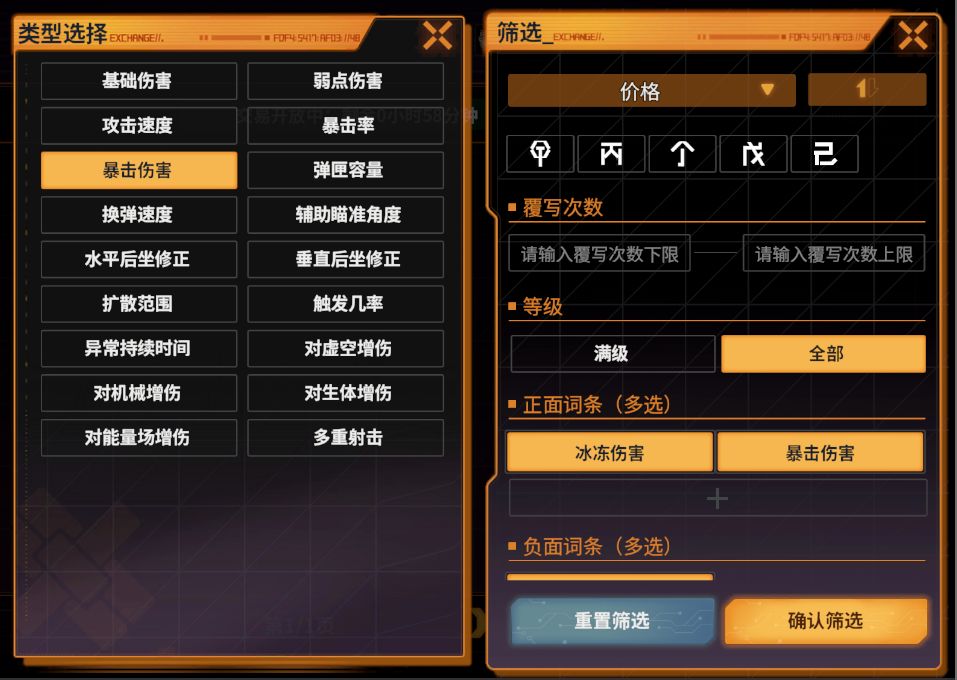 - 武器类:玛尔斯印记、弹尽不绝、幸运渐进、无缝返续、全面增幅、爆膛连发、暗香零落。