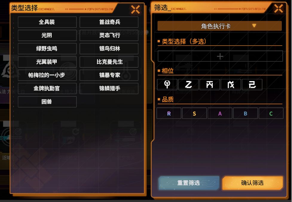 在贸易中心、烧录机、时能者-装配执行卡界面,都新增了筛选、排序功能