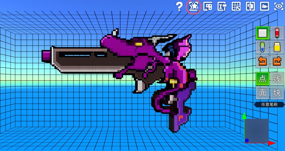 我们先进入一件自定义武器的3d编辑界面,点击右上角的按钮,进入自定义动画的编辑页面