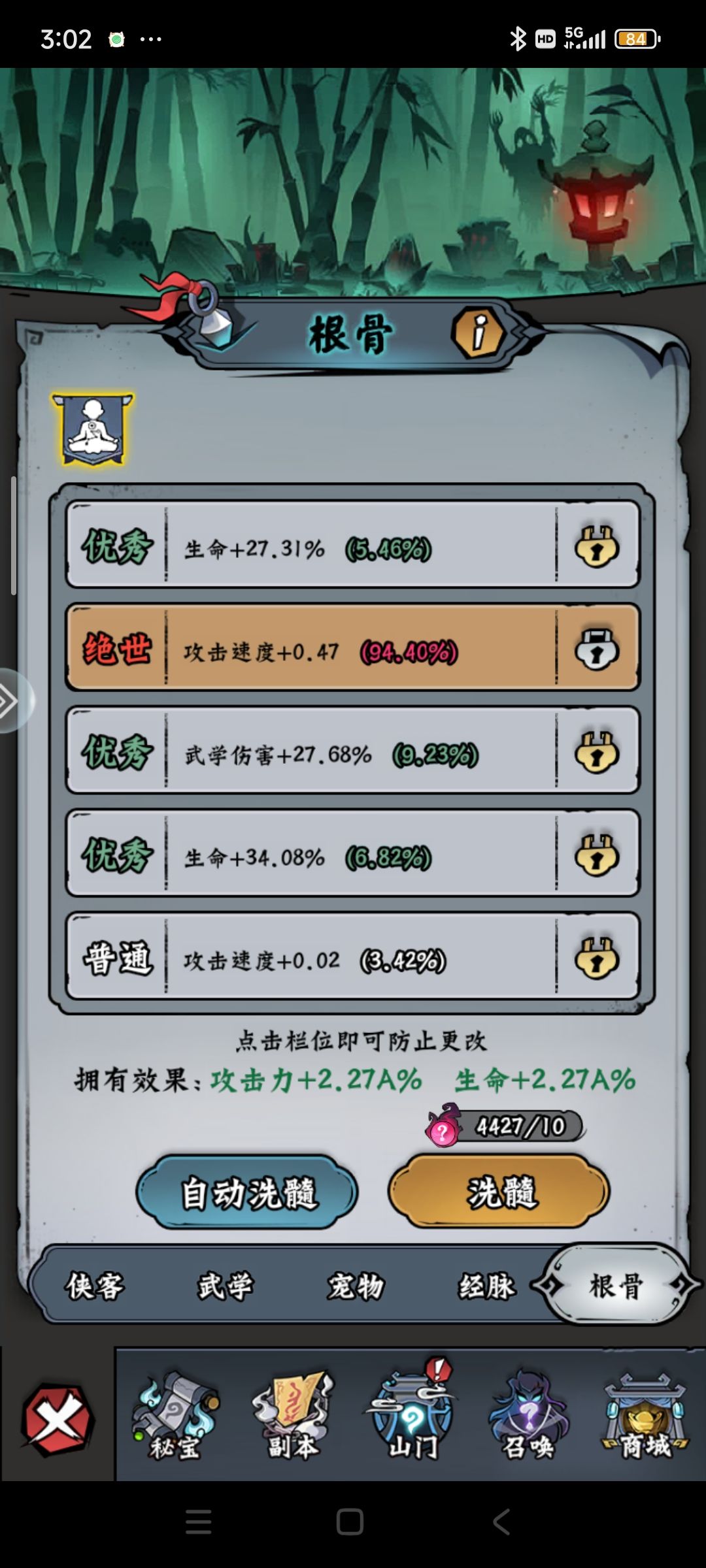 懒得洗就先解锁五条属性,后续攒着,这个游戏我们就熬,熬走所有人,基本很多人玩超不过三天