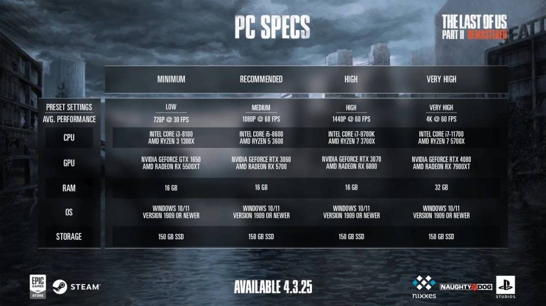 《最后生还者2》PC版即将发售,PC版本在画面上有所加强,并且包含了未在原版中公开的三个开发初期版本关卡。下面为大家带来《最后生还者2》PC版配置一览,希望对大家有用。