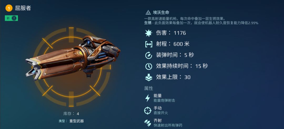 其锈蚀效果在命中目标后叠层累积,每层为2.99%,最高可达30层,可降低敌方高达90%的回复量,且这一“治疗削减”效果范围之广,其中包括“修复模块所提供的耐久值补充”、“无人机修复”以及其他形式的治疗效果等。