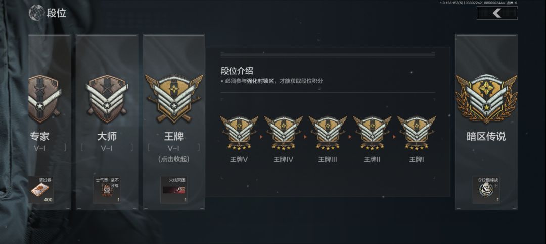 新赛季只能通过淘汰/助攻淘汰特遣队员提升段位积分,王牌V及以上段位需参与强化封锁区对局。