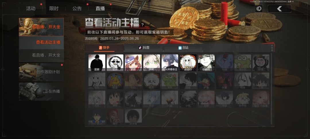 薅羊毛指南:多平台合作主播人数众多,可以叫小伙伴各个直播间都尝试一下,中奖概率还是蛮大的,快去各大直播间尝试下,说不定下一个暗区锦鲤就是你哦~