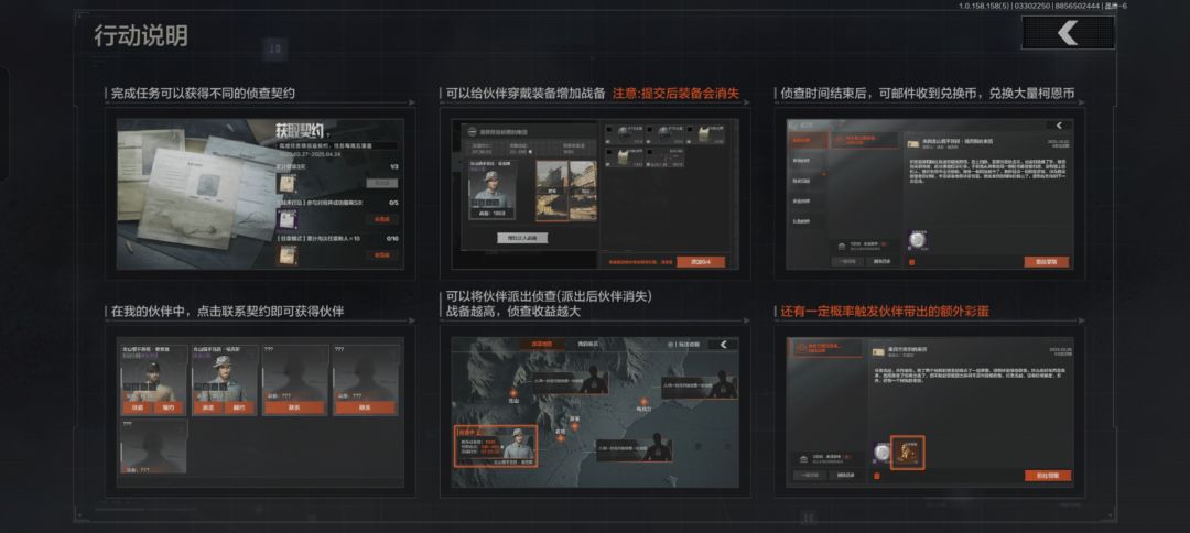 行动须知:卡莫纳行动基本是放置流,零成本暴富行动,不进对局也能得柯恩币,把战备拉满放心拿侦查收益就行了。