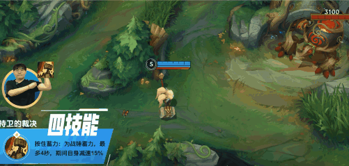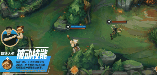 而到了团战时,奥拉夫开启R(4)技能后能无视波比的控制直冲威胁我方C位,而发育成型的奥拉夫更能凭借被动技能的强力回血,在波比进场后开大分割战场,为队友创造集火波比的机会。