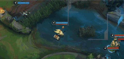 对方也喊打野来GANK,此时波比可使用E(3)技能借对方打野、小兵位移,开启W(2)技能加速,轻松溜走。