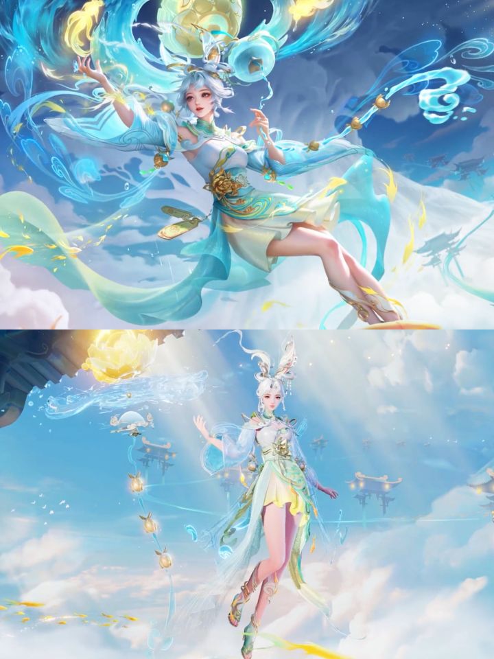 皮肤配色是青黄,颜色有点撞西施FMVP,但又有点像嫦娥?