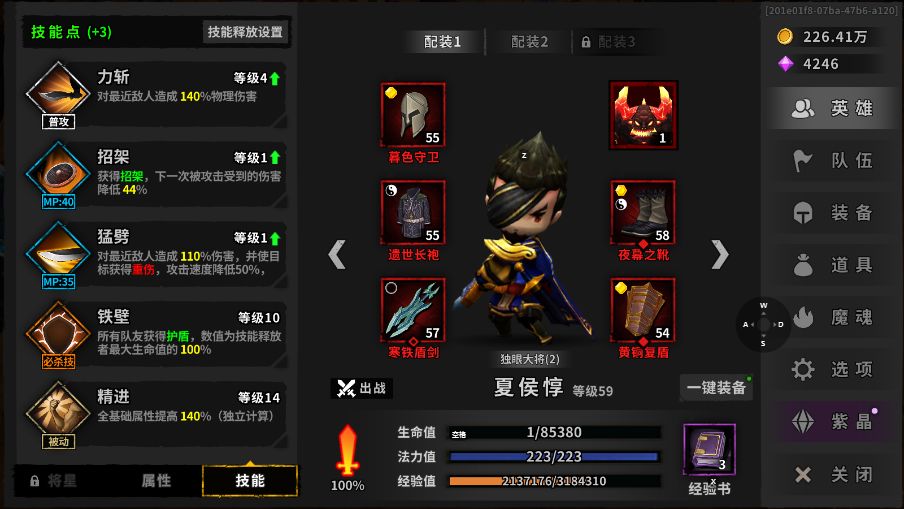 套装选择:夏侯惇专属2+进阶体力/体能充沛3(有专属的可以加点输出,没有也无所谓)