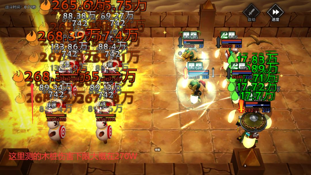 - 这套阵容测试结果,体火桶的木桩伤害下限大概在240W(因为今天的DEBUFF是火伤减少15%)