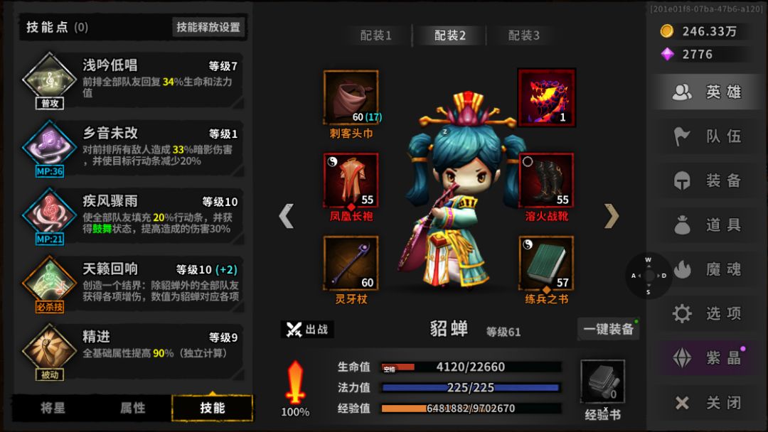 套装选择:貂蝉专属3件套+化暗为火2件套(非必要,低周目的专属加成收益不大)