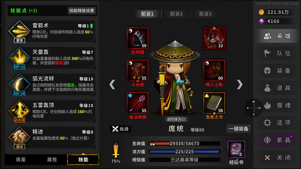 祝融核心要求:攻速>庞统,堆减伤/体力,带晕魂