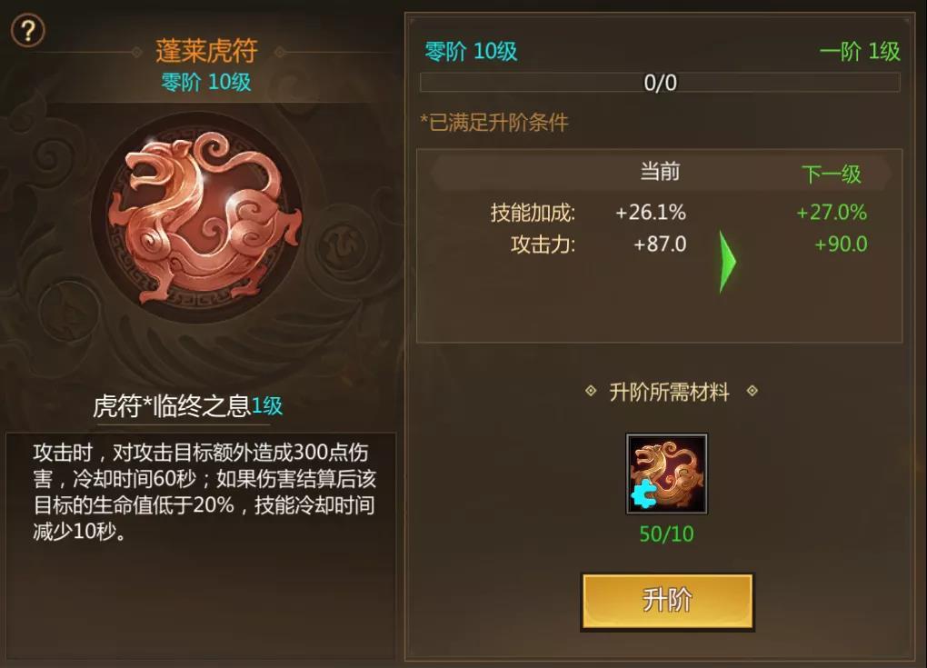当虎符的等级达到10级时,就可以给虎符进行进阶。
