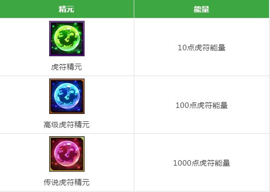 虎符精元根据品质一共分为三档,分别是虎符精元、高级虎符精元、传说虎符精元,不同品质的虎符精元能带来的虎符能量也都不同。