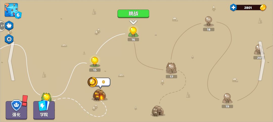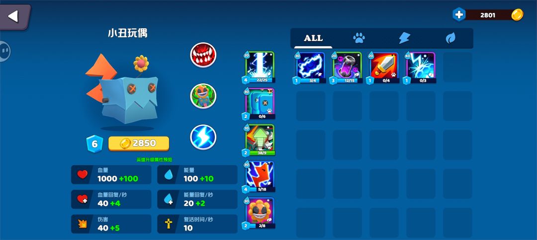 关卡内角色为自动攻击和自动移动,玩家手动释放技能,只能通过技能控制角色的移动,合理搭配技能是过关的关键,目前接触到分身物理流、闪电流、召唤流这三个流派。