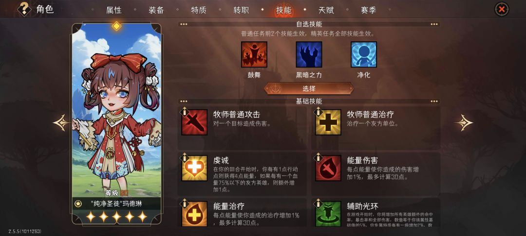 鼓舞基本全拿,黑手可以不拿全队,净化随便拿拿,优先拿净化数量增加和加命中