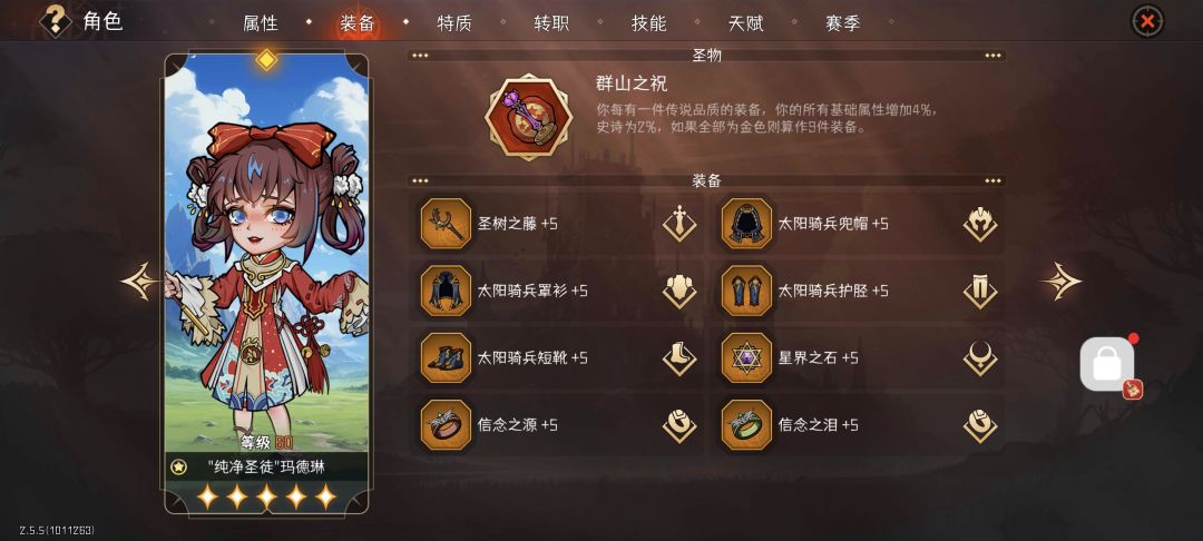 朴实无华群山太阳骑兵,武器可以拿骑士冲锋专武,最好整个金的拿减防词条,我没刷出来,拿个治疗凑合,戒指减能和cd,项链能量
