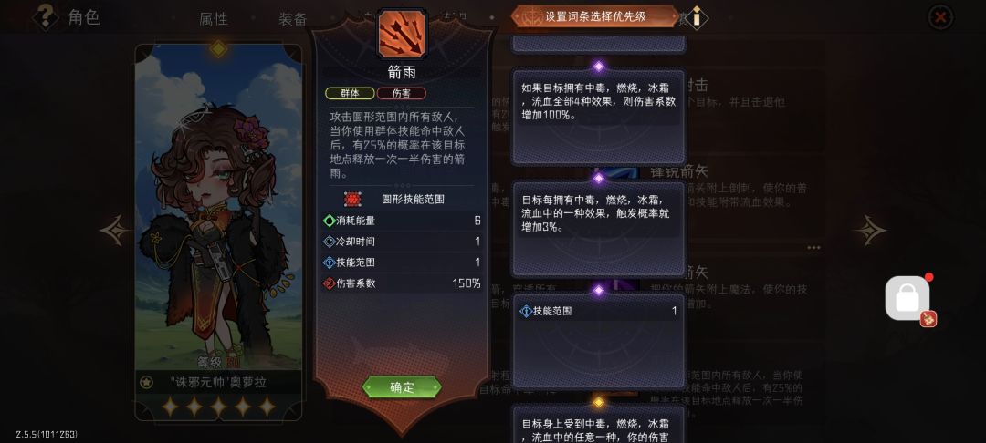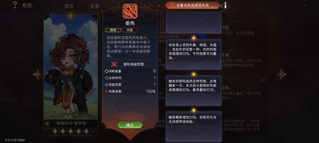 综上:箭雨需要2蓝3紫3金8词条,达到57触发率与450对群/中心675和1050(5技能范围)对单