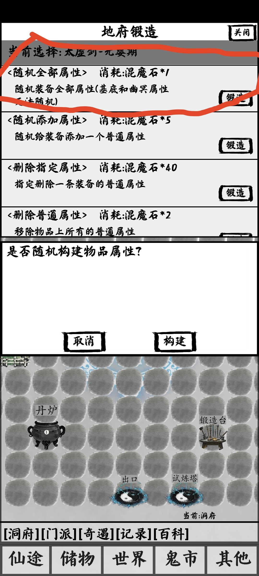 3、地府锻造选择第一个(随机全部属性)消耗1个混魔石 会出现与幽冥词条相同的词条 。